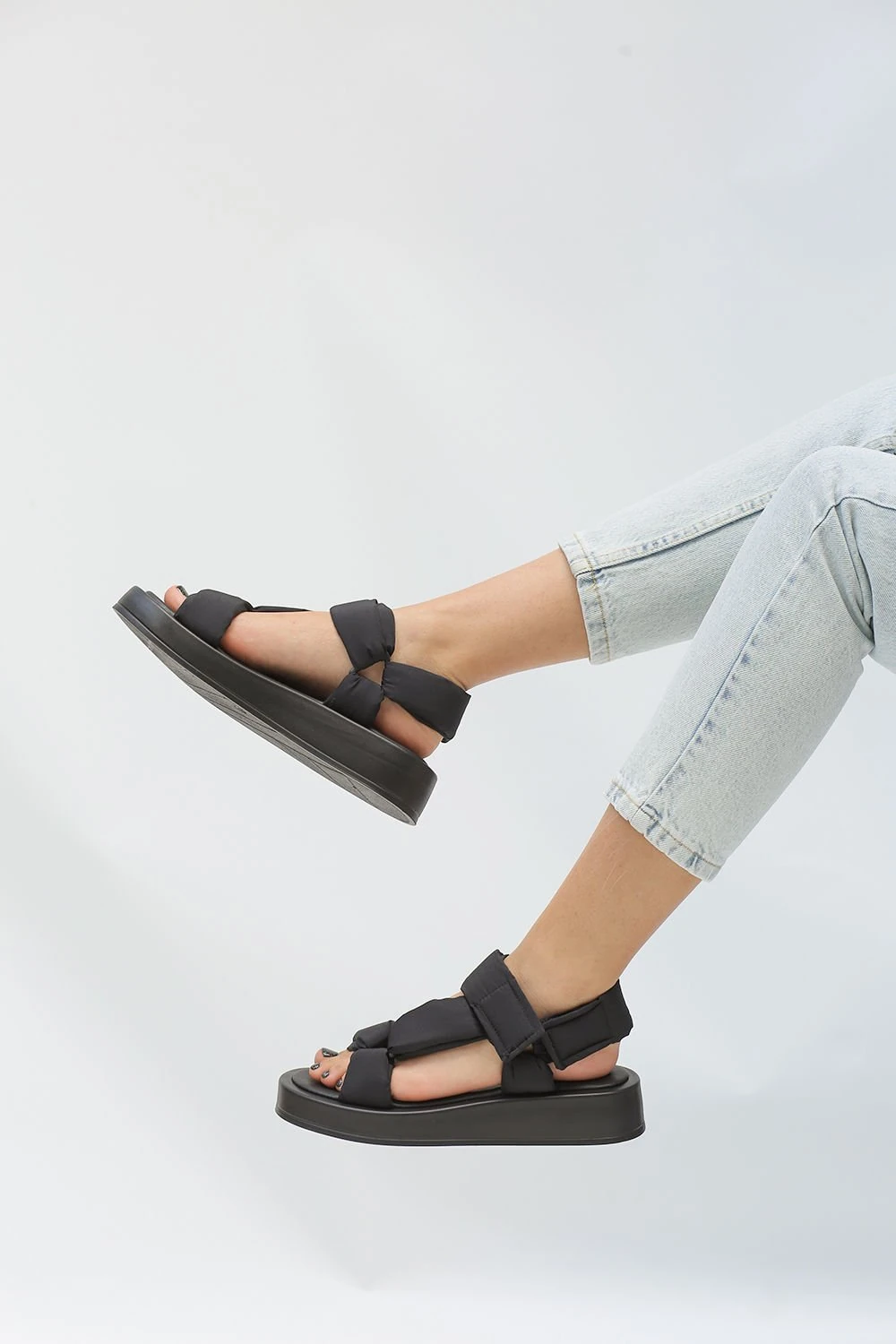 Lamar Şişme Kumaş Yapılı Esnek Siyah Renk Kadın Sandalet B013